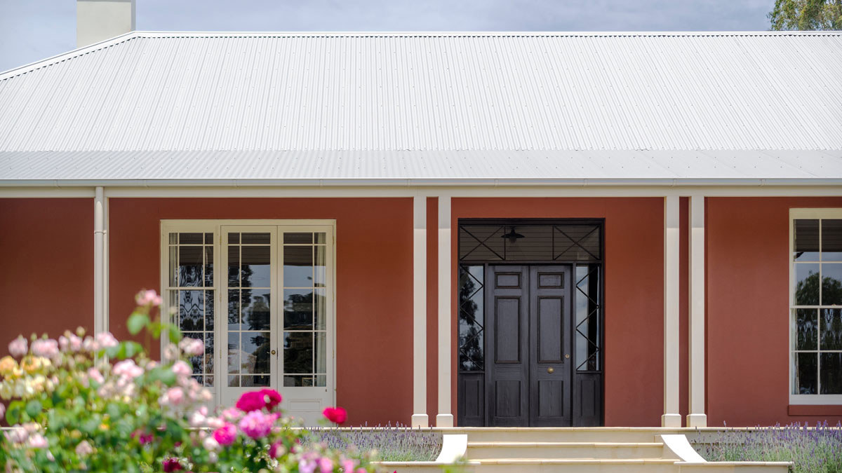 The original home on this busy beef cattle and sheep farming operation in southern NSW was demolished, and only the original brick chimney was retained. During the demolition architect Michael Bell noticed the rich local earth, which later became his colour inspiration.