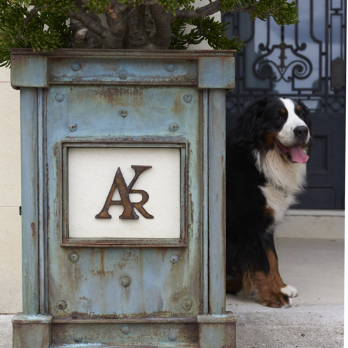Is it ever a bad day when you arrive home to this face? Balloo is standing guard at the door, flanked by two gorgeous planters that Amy updated using Porter's Liquid Bronze with Bronze Verdigris.