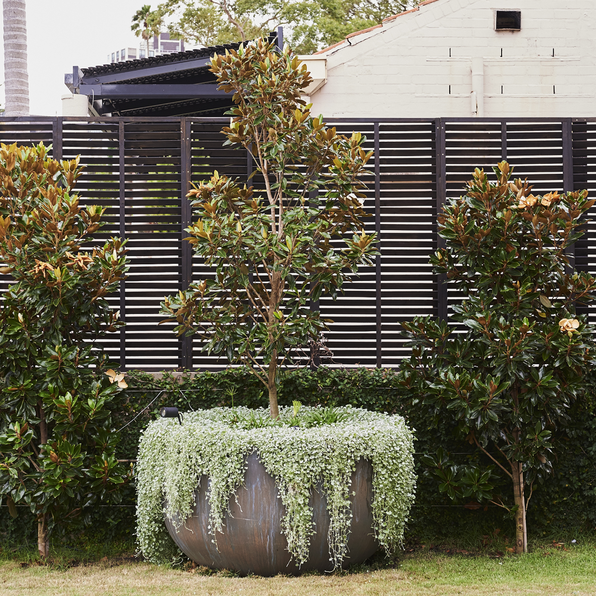 Liquid Bronze with Verdigris peeping out from behind the luscious silver falls plant, and Palm Beach Black exterior timber stain on the screen behind. Amy knows that the backdrop is as important as the main event for maximum impact in the garden.